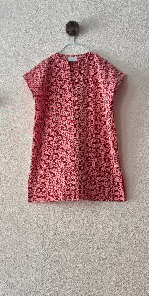 RED BRODERIE ANGLAISE SHORT KAFTAN